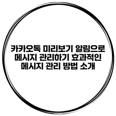 메시지를 관리하는 데 있어 어려움을 느끼고 있다면, 지금 바로 카카오톡 설정을 변경하여 미리보기 알림을 활성화해 보세요. 삶의 작은 변화가 큰 차이를 만들어 줄 수 있답니다!