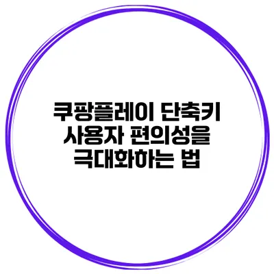 쿠팡플레이의 단축키 사용은 사용자 편의성을 크게 향상시킬 수 있는 방법이에요. 쿠팡플레이 단축키를 활용해 효율적으로 콘텐츠를 즐기는 방법을 알아보면 더 많은 시간을 절약하고 쾌적한 시청 경험을 누릴 수 있어요. 지금 바로 쿠팡플레이의 단축키를 익혀보세요!